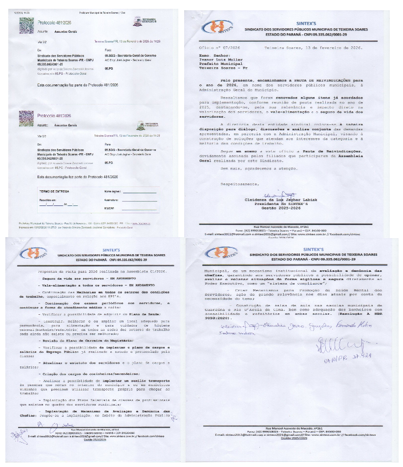 A Presidente Cleidenéa da Luz Jagher Labiak esteve em reunião na data de hoje, 21 de janeiro de 2026, com o Secretário Geral de Governo Eloyr José Jagher, ocasião em que foram tratadas as reivindicações apresentadas no ano de 2025, as quais constavam na pauta para serem executadas, conforme promessa assumida pelo Prefeito Ivanor Luiz Muller no início de 2025.